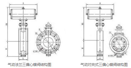 2、根據連接方式分為氣動對夾式三偏心蝶閥和氣動法蘭三偏心蝶閥,可分別使用于不同的工藝管道中;